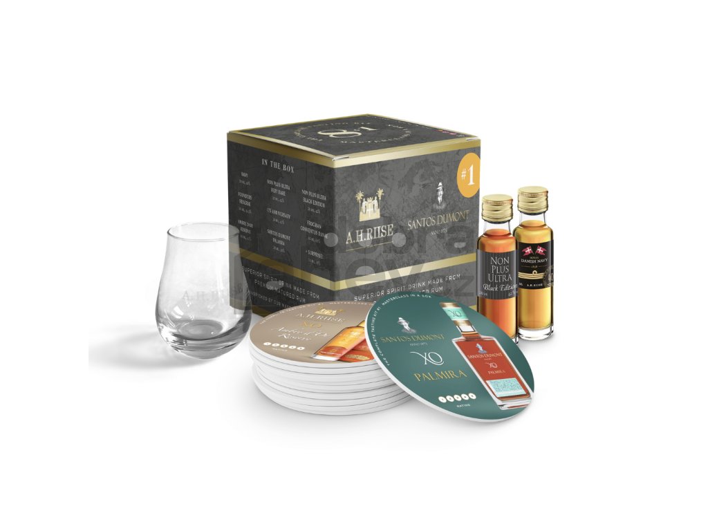 Tento tasting box, pojmenován podle samotného Alberta Heinricha Riiseho, je dokonalým úvodem do světa A.H. Rise. Obsahuje široký výběr 8 směsí z našich řad XO, Danish Navy, Ultra Premium a Santos Dumont a 1 speciální překvapení. Vychutnejte si ochutnávku přímo z krabice nebo si uspořádejte vlastní masterclass, kdykoli budete chtít. Degustační sada obsahuje odkazy na videa s milovníkem rumu Larsem Code, který komentuje každou směs a podělí se o některé úžasné příběhy, které se za nimi skrývají. Obsahuje: 8 + 1 lahví, degustační podtácky s poznámkami k degustaci a 1 originální tulipánovou degustační sklenici A.H. Riise.