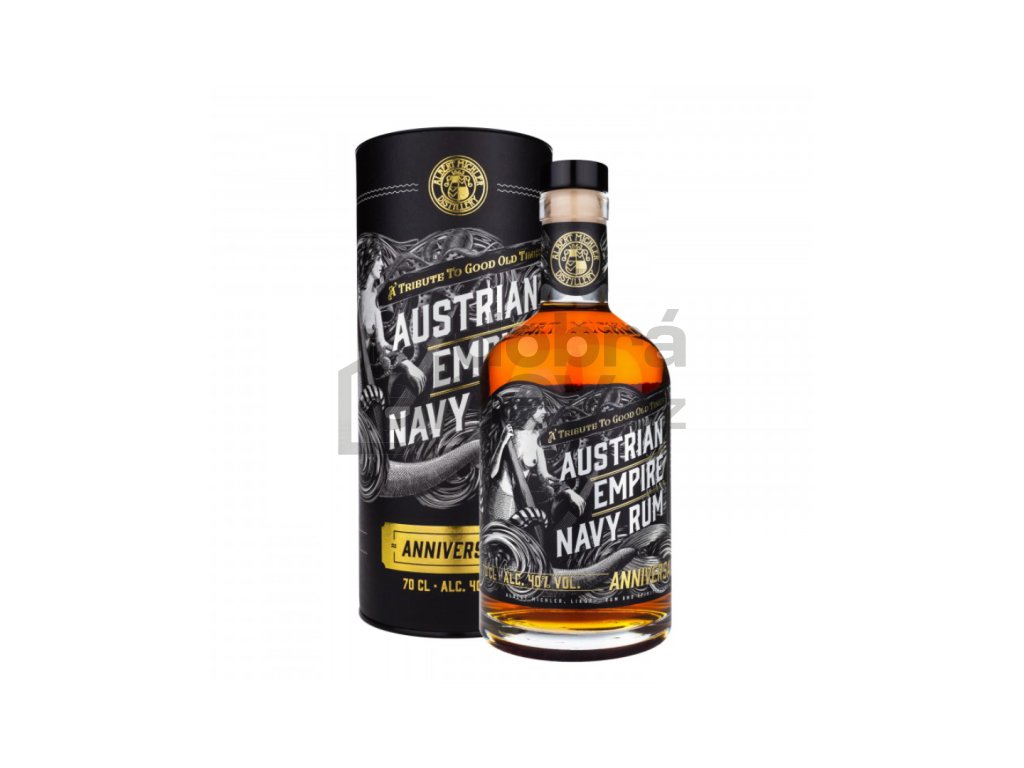Excelentní, unikátní a velmi vyjímečný rum se vyznačuje svěží vůní, spíše sladší chutí sušeného ovoce. Dlouhé zrání se navzájem dokonale doplňují. Vyznačuje se impozantní velmi tmavou mahagonovou barvou. Austrian Empire Navy Rum Anniversary byl uveden útou k našim společným předkům ke stému výročí rozpadu největší evropské říše v dějinách - Rakouské monarchie. V Rakousko-uherské monarchii spolu žili Němci, Češi, Rakušané, Maďaři, Chorvaté, Slovinci i jiné národy. V říši, kterou obývalo více než třicet milionů lidí, byla výjimečná vesnička s méně než tisícovkou obyvatel. V obci Buková, která leží v české části Slezska vnikl lihovar Alberta Michlera. Lihovar tak oblíbený, že jeho rumy končily až na dvoře ve Vídni a pil je i sám císař František Josef I. Dodavatel rumu Alberta Michlera přežili turbulentní dobu první světové války a na výsluní vkročil i do nové epochy svobodných národů. Jeho rumy si našly své místo i v Československu jehož vznik si letos připomínáme. Osudovými se pro palírnu Alberta Michlera staly až události po konci druhé světové války. Divoký odsun německy mluvcích obyvatel byl pro firmu smrtelnější než výstřely z pušek a tanků. Pomyslným hřebíčkem do rakve byly sedmdesát let staré události února 1948, kdy moc převzali komunisté. V roce výročí velkých osmičkových let, které ovlivnily na dlouhá desetiletí život nejen v Česku, ale i celé Evropě se Albert Michler vrací. Protože státy vznikají i zanikají, mění se jejich vůdci i hranice, ale kvalitní rum z nejlepších palíren přežije. Letos přichází s novým rumem Anniversary. Jeho chuť přináší to nejlepší ze všech epoch, které značka Albert Michler přežila.