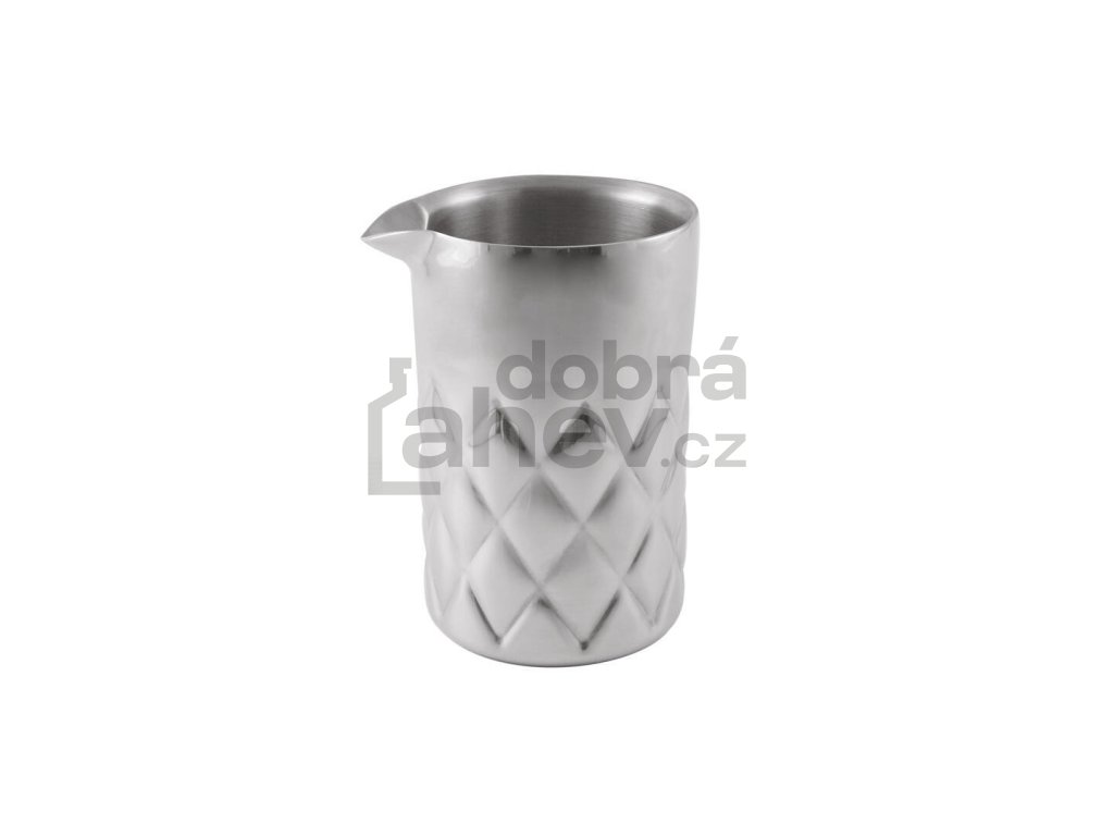 Míchací sklenice z nerezu je tak trochu netradičním provedením. Sklenice by měla být ze skla, jak její název napovídá, avšak tato je vyrobena z kvalitního nerezu AISI 304 v EU. Provedení je dvoustěnné, díky tomu sklenice lépe izoluje, nerosí se a led odtává pomaleji než ve skle. Je vyrobena z jednoho kusu materiálu, tudíž bez viditelného sváru.