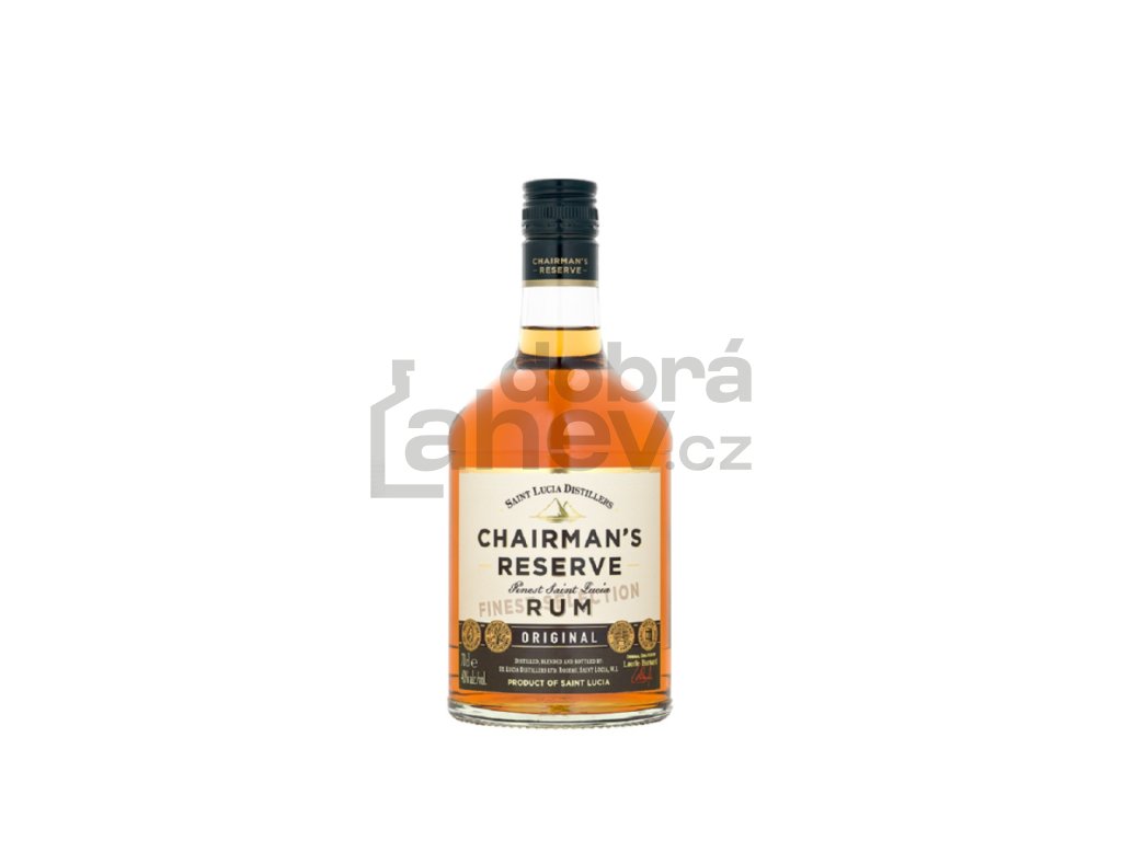Chairman´s Reserve Original je typickým rumem z ostrova St.Lucia a vlajkovou lodí značky Chairman´s. Směs rumů destilovaných v kotlích a v koloně byla uložena na průměrně 5 let do sudů do bourbonu. Po smíchání se rumy snoubily dalších 6 měsíců v sudech z Bílého dubu. Výsledkem je plný a zároveň lehký rum s nádhernými tóny karamelizovaného ovoce a uzené vanilky. ty skvěle doplňuje čokoláda, rozinky, tabák a hřebíček. Rum Chairman´s Reserve Origina bude skvělým základem pro Vaše koktejly, určitě jej ale ochutnejte samotný.