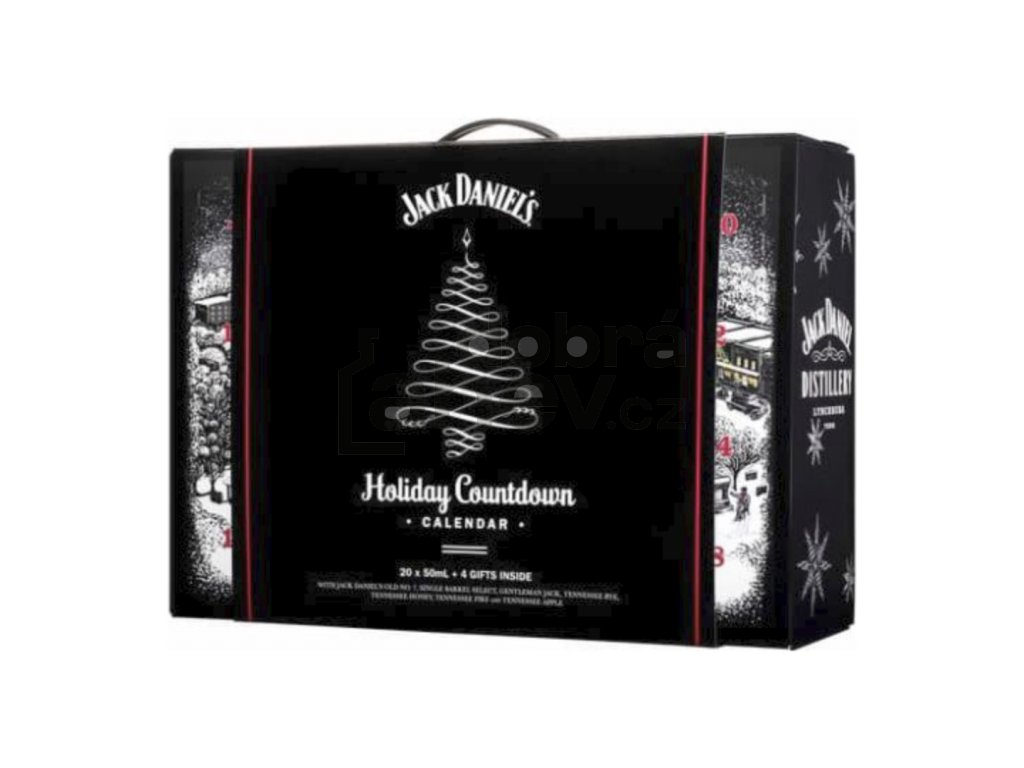 Jackův kalendár obsahuje: 5x0,05l Jack Daniel's, 2x0,05l Jack Daniel's SIngle Barrel, 2x0,05l Jack Daniel's Gentleman, 4x0,05l Jack Daniel's Rye, 4x0,05l Jack Daniel's Honey, 4x0,05l Jack Daniel's Fire a 3 dárky.