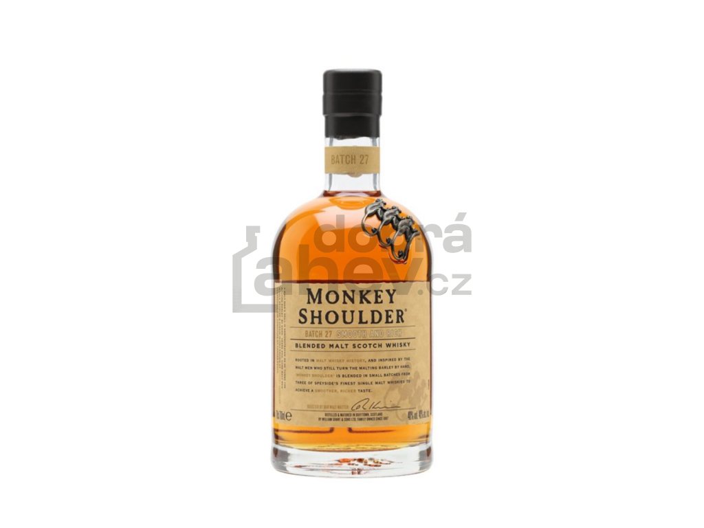 Unikátní blended whisky míchaná v relativně malých limitovaných várkách pouze ze sladové whisky, a to z palíren Glenfiddich, Balvenie a Kininvie. Jedná se o směs whisky, která zrála v sudech po bourbonu po dobu 6 až 12 let. Název whisky nemá nic společného s "opicí" po nadměrném pití, ale s pracovní deformací (Monkey Shoulder - „Opičí rameno“), kterou trpěli v dřívějších dobách pracovníci sladoven. Pravidelným přehazováním sladu dřevěnými lopatami docházelo k deformaci vrchní části těla, proto název Monkey Shoulder. Tato whisky je poctou všem těmto pracovníkům, kteří položili základ slávy skotské whisky.Doplňkové parametry