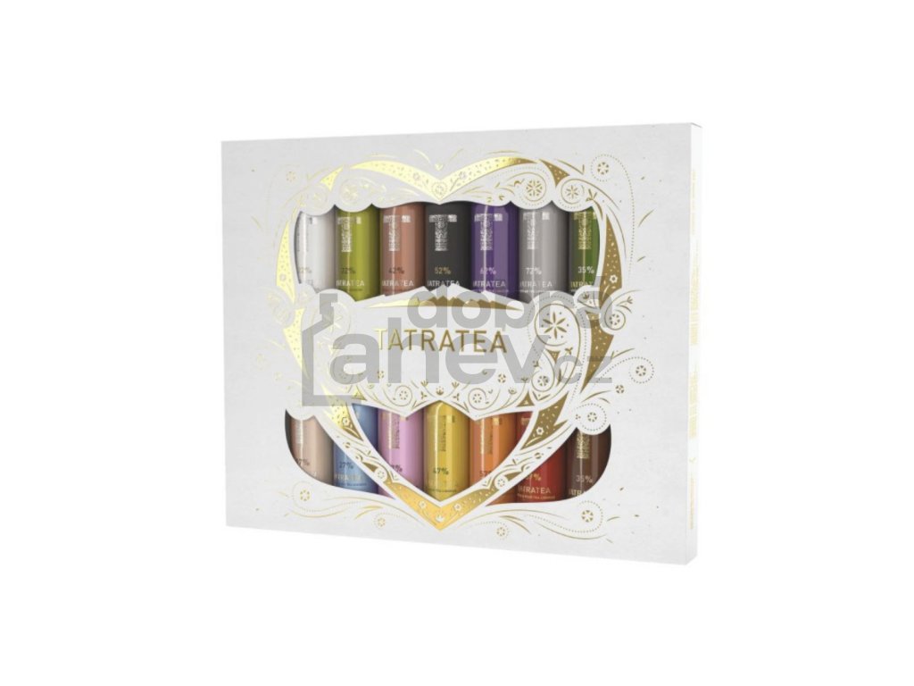 Novinka, unikátní dárkové balení oblíbené značky čajovo-bylinných likérů, Tatratea. Dárkový set obsahuje miniatury 40 ml: 17% Milk & Tea, 22% Coconut Tea, 27% Acai & Aronia, 32% Citrus Tea, 37% Hibiscus & Red, 42% Peach Tea, 47% Flower Tea, 52% Original Tea, 57% Rosehip & Sea, 62% Forest Fruit, 67% Apple & Pear, 72% Outlaw Tea. Ochutnat můžete i varianty, které nejsou v běžné nabídce: 35% Herbal Tea (digestiv bez přidaného cukru, slazený extraktem z hrozinek, fíků a stévie, je složen z více než 30 bylin) a 35% Bitter Tea (digestiv bez přidaného cukru, slazený extraktem z hrozinek, fíků a stévie, je složen z více než 30 bylin).